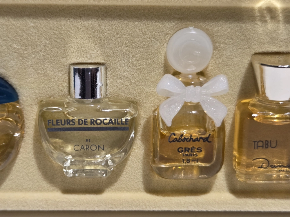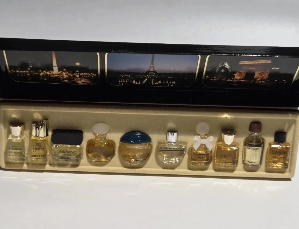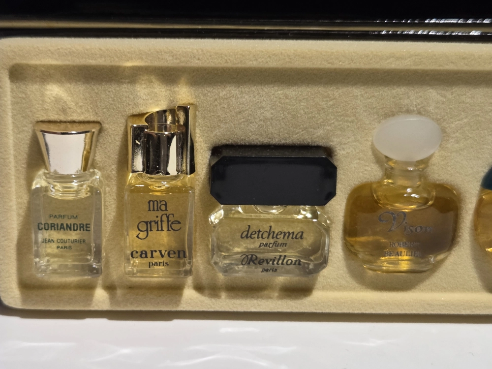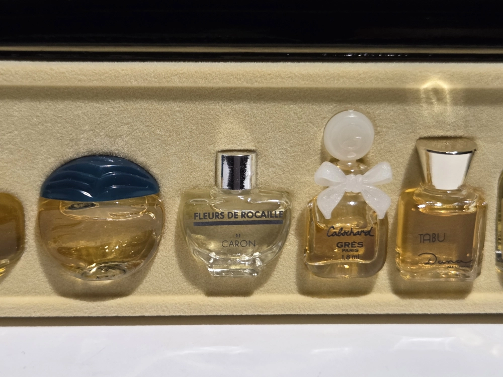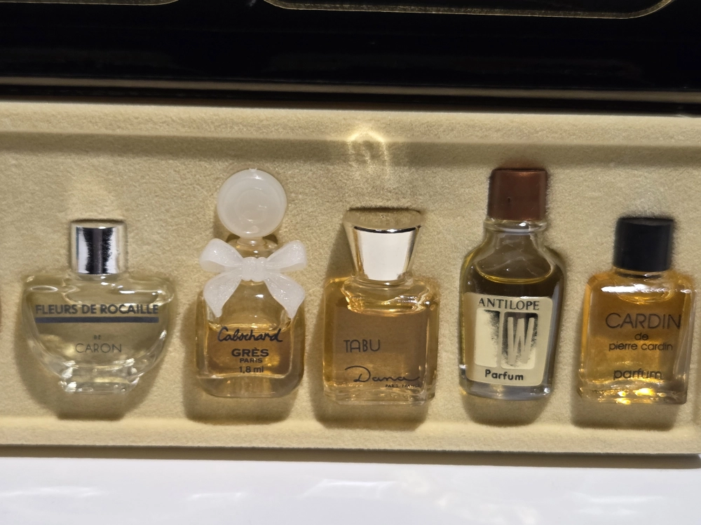 Finding a multi-brand set where every bottle is a Pure Parfum is extremely rare. This is an ideal “tasting set” for a serious connoisseur wanting to experience the golden age of French perfumery without the multi-thousand dollar cost of full-sized extrait bottles.